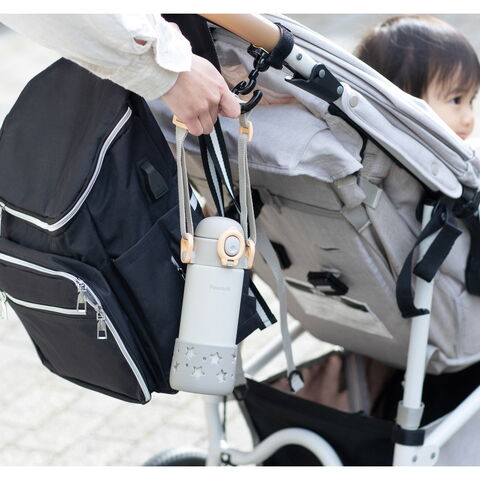 ベルト付で持ち運びしやすい1歳頃から使えるベビー用水筒。