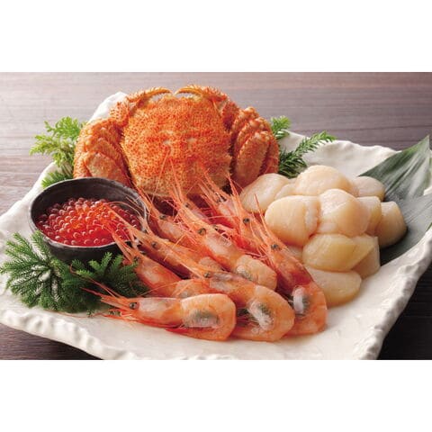 【数量・内容】甘えび(ロシア産)/400g、毛がに(北海道産)/約400g、ほたて貝柱(北海道産)/400g、いくら醤油漬(北海道網走産)/80g×2