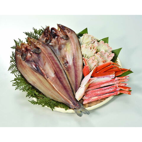 「カネサン佐藤水産 真ほっけ開き・ボイルずわいがにセット」 北海道の真ほっけ開きとボイルずわいがにをセットした、豪華なギフトセットです。