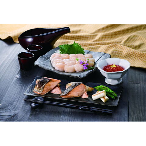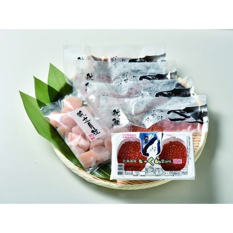 【数量・内容】北海道産秋鮭切身/70g×4、北海道産ほたて貝柱/200g、北海道産いくら醤油/100g