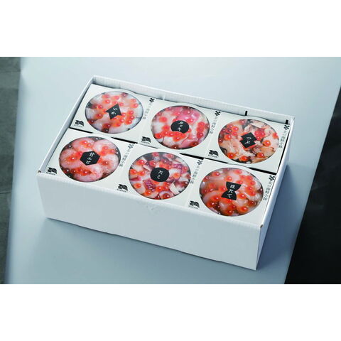 【数量・内容】甘えび小鉢・ほたて小鉢・つぶ小鉢・いか小鉢・たこ小鉢・ほっき小鉢/各70g