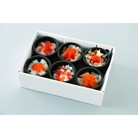 「くまだ 北の海鮮小鉢(6食セット)」 鮮度を大切にした海の幸を贅沢に味わえる海鮮小鉢です。ごはんに乗せてミニ海鮮丼に!