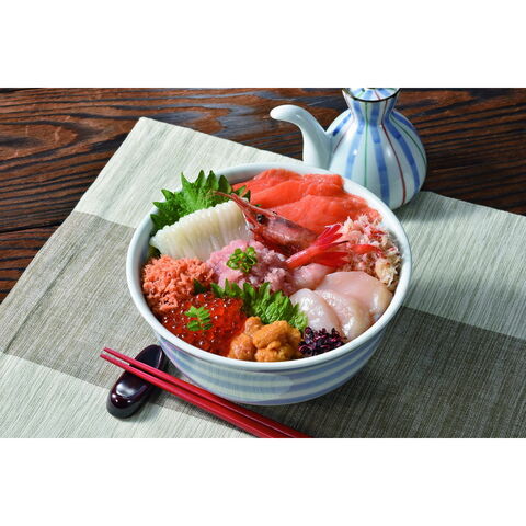 「船岡商店 海鮮丼セット」 函館朝市で人気の海鮮丼です。温かいご飯に乗せるだけで、美味しい海鮮丼の出来上がり。手巻き寿司でもお楽しみいただけます。