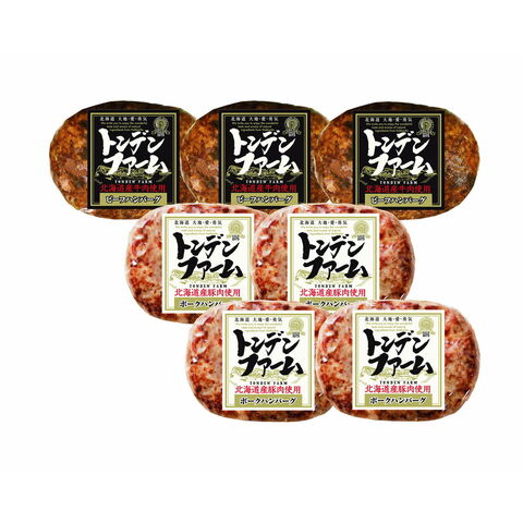 「トンデンファーム 北海道産ハンバーグセット7個」 北海道産主原料を使用した加熱済みのポークハンバーグとビーフハンバーグのセットです。