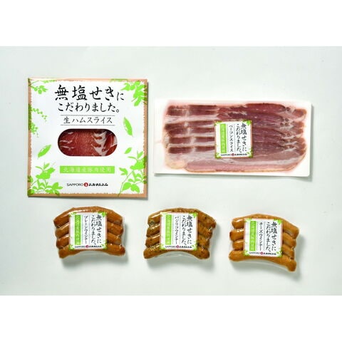 「札幌バルナバハム 北海道産無塩せきセット」 素材の美味しさを活かした無塩せきのセットです。発色剤を使用せずに、塩・砂糖・香辛料などを使用して仕上げました。