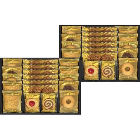 【数量・内容】クッキー(プチコーヒー2枚入×12、プチラズリン・うずまき×各2、リングバター・リングココア・アールグレイ×各4、トフィーアーモンド×8)