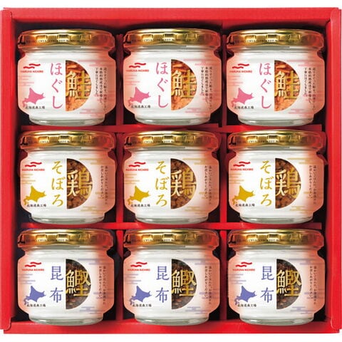 「マルハニチロ 瓶詰詰合せ」 「さけ」、「鶏」、「鰹昆布」の3種類の瓶詰を詰め合わせた瓶詰のバラエティセットです。