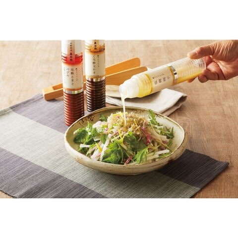 【数量・内容】くろ酢玉ねぎドレッシング、塩麹柚子ドレッシング・人参とだいだいドレッシング、完熟とまとバジルドレッシング各195ml×各1本