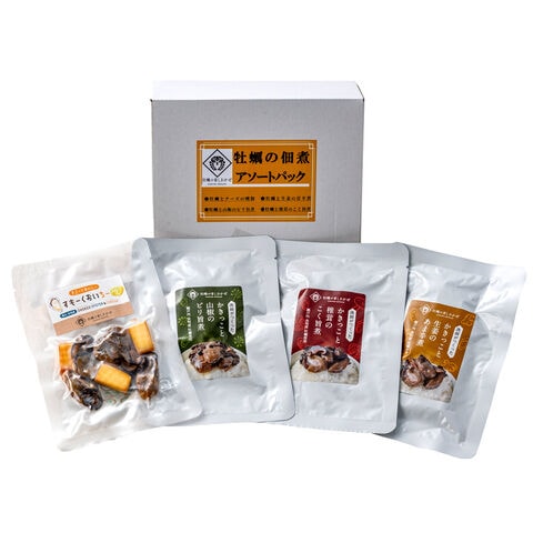 【数量・内容】かきっこと生姜の甘辛煮55g、かきっこと山椒のピリ旨煮55g、かきっこと椎茸のこく旨煮55g、すもーくおいちー25g