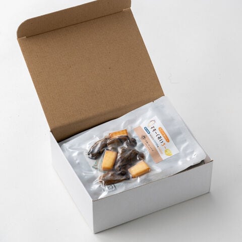 <かきっこと椎茸のこく旨煮>牡蠣(岡山県瀬戸内市産)、椎茸、清酒、粗糖、醤油(小麦・大豆を含む)、みりん、生姜