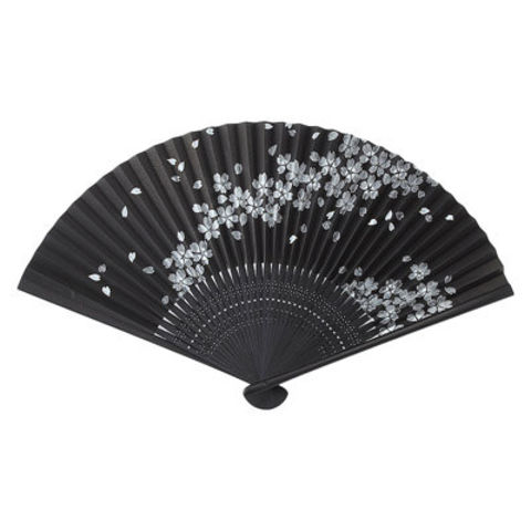 【伝統の技に、桜の雅さと潔さも感じられる上品でモダンな美しい扇子です】 300年以上の伝統を持つ、高島扇骨に和紙を貼って仕上げたものが近江扇子です。扇骨とは扇子の骨の部分のことをいいます。国産の扇骨のほとんどがここ高島で造られています。引き締まった黒地にシルバーの桜が施された柄で品格の高い仕上がりとなっており、花びらが舞っているのも潔さを感じられます。伝統と気品あふれる風をお楽しみください。