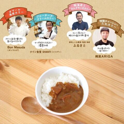 【数量・内容】クラフトベースカリー、オマール海老カリー、ブルーチーズクリームカリー、桜海老とカルダモンのカリー、特製チャーシューたれカリー 各100g