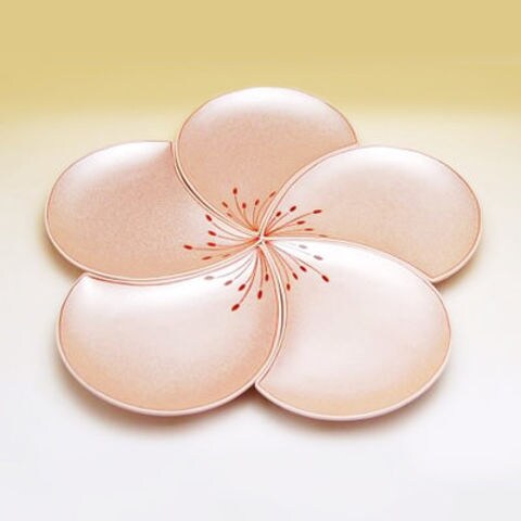 送料無料 梅花びら(赤)銘々皿(5枚セット)
