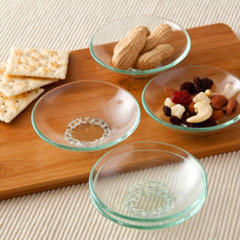 【使用用途はさまざま マルチなマメ皿です!】フロートガラスのナチュラルな透明感を活かしたシンプルなデザインで、豆皿としてはもちろん、盃、箸置き、トレー、アクセサリー入れなど、さまざまなシーンで幅広くお使いいただける優れもの。マルチな小食器として、贈りものとしてもきっと喜ばれるはずです。(※本商品は、耐熱ガラスではありません)