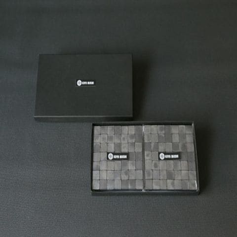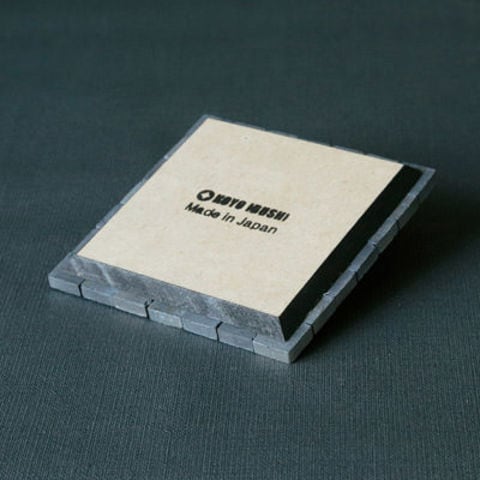 【クールなコースター2枚つなげて鍋敷きにも】いぶし瓦のモザイク「ARARE」つかったコースターです。耐熱性もあり、2枚をつなげて鍋敷きとして使うこともできます。素焼きですので多少の吸水性があります。裏面は木製になっているのでテーブルに傷がつく心配もありません。オブジェや花壇にもお使いいただける商品です。