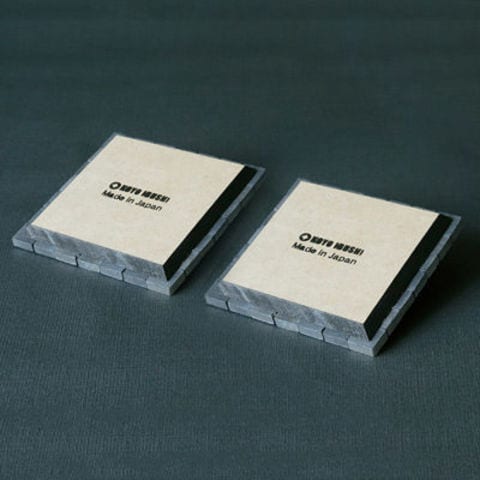 【クールなコースター2枚つなげて鍋敷きにも】いぶし瓦のモザイク「ARARE」つかったコースターです。耐熱性もあり、2枚をつなげて鍋敷きとして使うこともできます。素焼きですので多少の吸水性があります。裏面は木製になっているのでテーブルに傷がつく心配もありません。オブジェや花壇にもお使いいただける商品です。