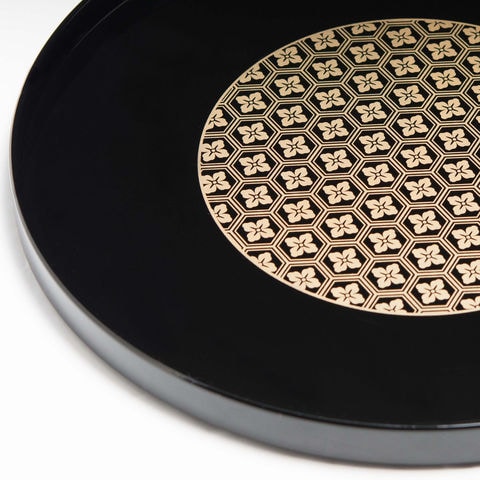 送料無料 丸盆 直径30cm 山中塗丸盆 亀甲小紋 10.0 大きな丸盆 漆器 トレー お盆 株式会社東出漆器店 石川県