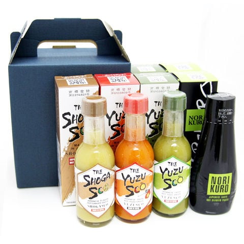 【原材料】【ゆずすこ】醸造酢、唐辛子、ゆず皮、食塩 【しょうがすこ】しょうが、醸造酢、唐辛子、食塩、こんにゃく粉 【ゆずすこレッド】醸造酢、唐辛子、ゆず皮、ゆず果汁、食塩 【のりクロ】砂糖、醤油、ゆずこしょう、干し海苔、醸造酢、食塩、馬鈴薯澱粉、酵母エキス(原材料の一部に大豆・小麦含む)
