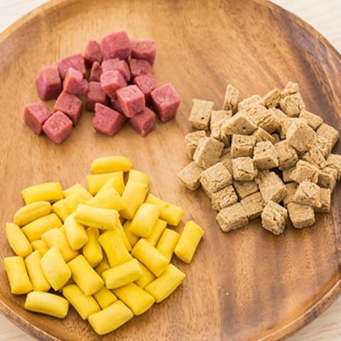 【原材料】鹿肉、宗田節、沖サヨリ、きびなご、かつお、小麦粉、米粉、おから、米ぬか、野菜、オリゴ糖、なたね油、綿実油、ショートニング、乳酸菌