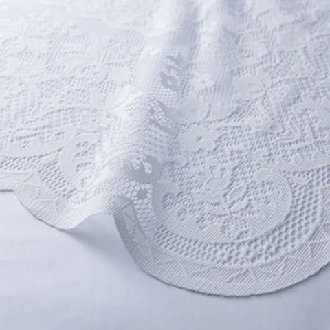 【テーブルコーディネートの強い味方。 上品な食卓の印象を醸し出す定番クロス。】日本有数の繊維・織物の産地である群馬・両毛地域でインテリア製品などを製造している「加栄レース株式会社」。約40年にわたって培ってきた同社の高度な編織技術を駆使して、精巧に編み込んだ「レースジャガードテーブルクロス」です。6人掛け用の長方形ダイニングテーブルの大型サイズ。質感のある繊細な印象のジャガード柄のレースが、ご家庭の食卓をエレガントな雰囲気に演出します。表面は撥水加工を施しているため、食物や飲み物をこぼしてもサッと拭き取れ、ご家庭の洗濯機で洗えるのでお手入れも簡単、いつも清潔に保てます。テーブルコーディネートの強い味方として来客時はもちろんのこと普段遣いとしても活躍する、ご家庭に1枚備えておきたいテーブルクロスです。