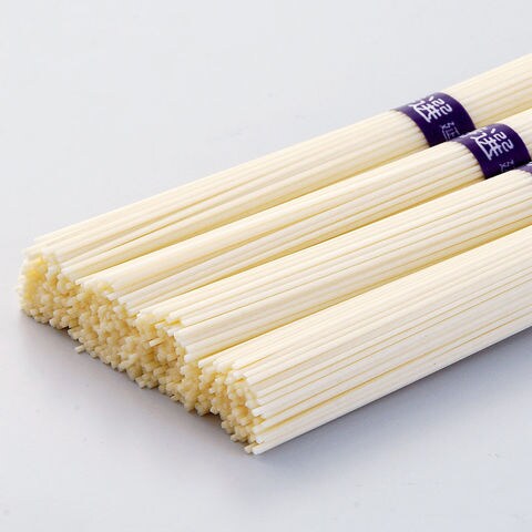 【手延製法にこだわり、丹念に仕上げたそうめん】昔ながらの手延べ製法で作った、少し太めのコシの強い自慢のそうめんです。明治16年(1883年)、禁教令が解かれた長崎・外海地区(当時の黒崎村出津の里)に赴任したフランス人宣教師マルコ・マリー・ド・ロ神父によって伝えられた「手延製法」を今も受け継ぐ商品。ユニークな長崎外海の文化的伝統を背景に育った商品です。