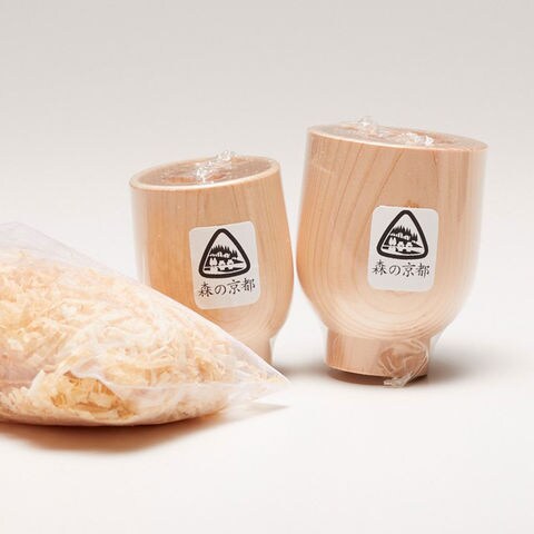 【京都丹州産ひのきでつくった上品なぐい呑みです。】京都府福知山市で丹州桧を専門に製造販売を行っている桐村製材の人気商品です。桧のぐい呑みは水分を含むとほのかな桧の香りがたちます。晩酌のひとときに、ぜひお酒を飲みながら桧の香りをお楽しみください。セットの箱にはクッション代わり桧のにおい袋が入っています。こちらは居間や玄関に置いて桧アロマとしてお楽しみいただけます。霧吹きで水をかけると香りが強くなりますのでお好みにあわせてご利用ください。
