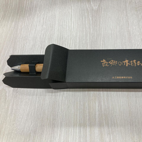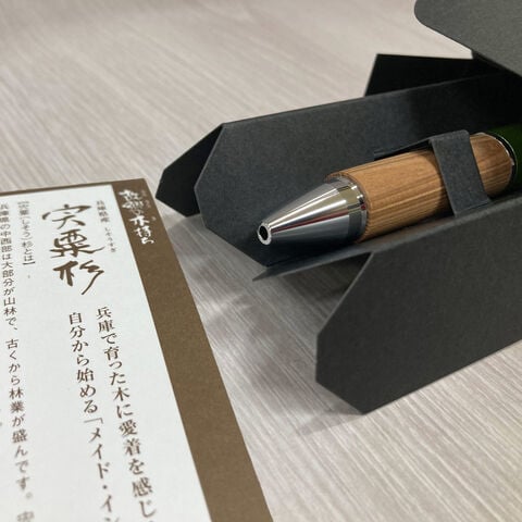 「トクサヤ文具 宍粟杉ジェットストリーム 4+1 ギフト」は、三菱鉛筆とのコラボレーションで誕生した、4色ボールペンとシャープペンシルが一つになった多機能ペンです。地域の木材を使った筆記具で故郷や環境への関心を育む三菱鉛筆「故郷の木持ち」シリーズに、兵庫県産・宍粟杉を使用した特別なジェットストリーム(Jetstream)が登場。宍粟杉は、兵庫県中西部・宍粟(しそう)地区の豊かな自然が育んだ木材。古くから建材や家具に親しまれ、地域に根ざした温もりのある素材です。薬品を使わず水と熱だけで加工された軸は、手になじむ優しい質感と、天然木ならではの穏やかな香りが特徴。木目の表情が一本一本異なり、唯一無二の個性が楽しめます。人気のジェットストリームインクを搭載し、なめらかな書き心地と高級感あるデザインを両立。木の温もりと優れた書き心地が出会った、日常に寄り添う特別な一本です。お祝いの品にもおすすめ。