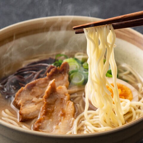 パンチの効いた香りと旨味を楽しめる「ご当地 熊本 マー油ラーメン」です。とんこつベースに香辛料のパンチが効いた香ばしい風味のスープが特徴です。ガツンとくる味で、チャーシューやネギ、きくらげなどの王道のトッピングと好相性です。麺は厳選した良質な小麦を使用し、もっちりと喉越し良く仕上げています。