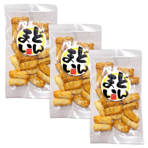 【原材料】もち米(タイ産、国産)、植物油、鰹粉末、調味塩(食塩、たん白加水分解物、香辛料)/調味料(アミノ酸等)、乳化剤、(一部に大豆を含む)