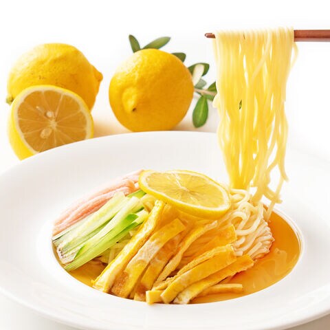 本場、讃岐うどんの製法で作られた麺は、短い調理時間でも驚きのもちもち食感。爽やかなレモン香る醤油ベースのスープは、ごま油のふんわりとした香りが食欲をそそります。暑い季節でもつるっと食べられる美味しい冷やし中華、夏限定の食べ物です。