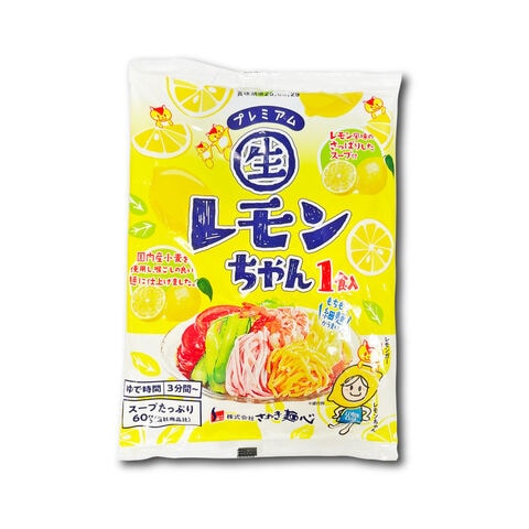 こだわりの「国内産小麦粉100%」使用した「プレミアムれもんちゃん」は、本格的な生中華麺だからこその食感と味が楽しめます。レモンちゃん専用の「さわやかレモンスープ」は、試行錯誤を繰り返し完成したどんな具材にもあう万能スープです。たっぷり60g付属しているので、麺や具とよく絡んで、「レモンちゃん」限定の美味しい冷やし中華を味わえます。