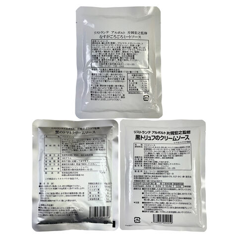 【数量・内容】なすがごろごろミートソース、蟹のトマトクリームソース、黒トリュフのクリームソース 各140g