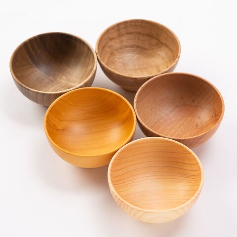 【5種類の天然木それぞれの美しい木目模様をお楽しみいただけます】島根県山間部、匹見町にある森の工房「Hikimi 森の器」より、国産の材木を使ってつくったぐい呑み5個セットをお届けします。樹種については、桧や松の針葉樹や朴ノ木、栃ノ木や楓等の広葉樹約30樹種の中から選別してお送りします。熟練の職人が一つ一つ心を込めてつくる木の温もりのある食器です。自然素材で軽く、口当たりも、手触りも優しい木のぐい飲みで呑むお酒は、ついつい飲みすぎてしまいそう。5種類それぞれの木目の美しさや質感を味わっていただくことができ、その日の気分で樹種を使い分けてみてはいかがでしょうか。お酒好きな方への贈り物としても喜ばれます。