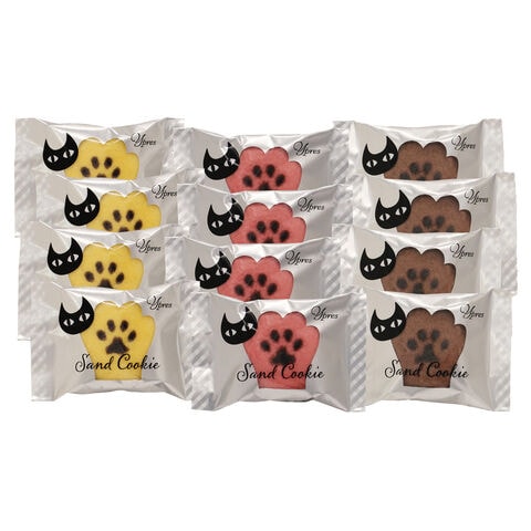 「イーペルの猫祭り サンドクッキー」は、ネコの可愛らしい肉球の焼き印がついた、ころんとしたサンドクッキーです。いちご、チーズ、ココアのクッキーにホワイトチョコクリームをサンドしました。おやつ、お茶菓子、おもてなしスイーツなどとして、美味しいチョコレートサンドクッキーをお取り寄せでお楽しみください。1枚1枚個包装されていますので、おすそ分けにも便利です。
