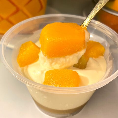【原材料】マンゴー(沖縄県産)、マンゴーピューレ(マンゴー(沖縄県産))、ナチュラルチーズ、クリーム、卵、砂糖、植物油脂、洋酒、(一部に卵・乳成分を含む)