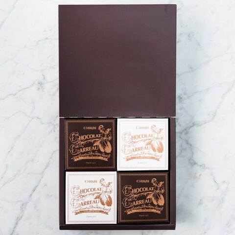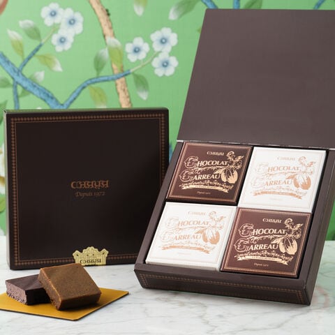 神奈川県葉山町の海辺にあるパティスリー”LA MAREE DE CHAYA(ラ・マーレ・ド・チャヤ)”の「葉山のショコラ・カロ アソート」です。カロとはフランス語で板瓦のこと。ヨーロッパの街並ある板瓦のような、かわいい四角いガトーショコラのアソートです。”ほんのり香るオレンジリキュールがアクセントの濃厚ガトーショコラ”と、”香り高いアールグレイパウダーと、クーベルチュールホワイトチョコレートを贅沢に使用したミルクティー味のガトーショコラ”の2種類をお楽しみいただけます。ティータイムに華やかさと贅沢さをプラスする一品です。贈り物やご自宅用にもぴったりです。開封後はお早めにお召し上がりください。