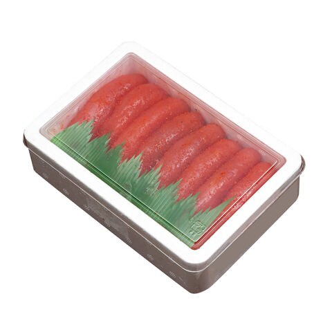 【原材料】スケトウダラの卵巣(ロシア産)、食塩、水飴、砂糖、唐辛子、アミノ酸液、焼き飛魚(あご)、焼き飛魚(あご)だし/調味料(アミノ酸等)、トレハロース、アルコール、pH調整剤、酸化防止剤(ビタミンC)、甘味料(ステビア)、グリシン、ビタミンB1、香辛料抽出物、着色料(赤102、黄5、赤3)、増粘剤(キサンタンガム)、発色剤(亜硝酸Na)、酵素