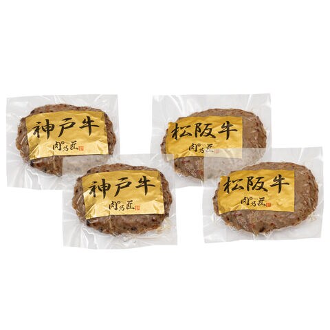 神戸牛ハンバーグ 松阪牛ハンバーグ 2種計4個 詰め合わせ ハンバーグ 冷凍 肉惣菜 お取り寄せ 和牛ハンバーグ 国産 黒毛和牛 肉料理 おかず 惣菜【北海道・沖縄県・離島 配送不可】