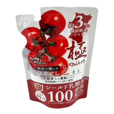 秋田県産トマトを使用した「乳酸菌入 濃縮トマト飲料 極」です。シールド乳酸菌(※)を100憶個配合した、新感覚の濃縮トマト飲料です。秋田のトマトを極めるべく、6つのこだわりから生まれた「極(きわみ)」濃縮トマト飲料をお取り寄せでお楽しみください。※「シールド乳酸菌」は森永乳業株式会社の登録商標です。