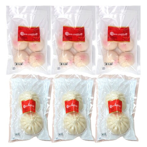 【数量・内容】桃まん4個(80g)、手包み肉まん2個(240g) 各3