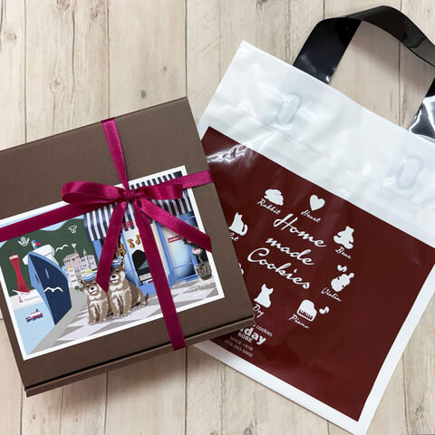 【数量・内容】角缶(アーモンドクッキー×8、ミニクッキー×3、ミニ犬クッキー×2)×1、丸缶(ミニクッキー×3、ミニ犬クッキー×2)×3、ポストカード×1