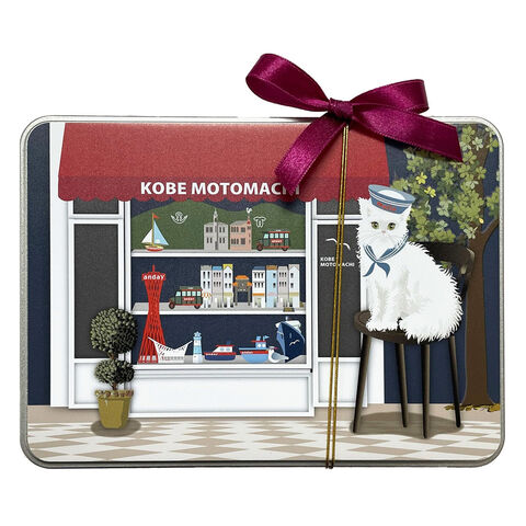 神戸アンディの「クッキー缶セット 赤テント ネコ柄」です。アーモンドクッキーやミニネコクッキーなどを詰め合わせた角缶(Lサイズ)とポストカードのセットでお届けします。神戸生まれのアンディのネコちゃんが、大好きな神戸の海・山・街を案内します。化粧箱に入れてお届けしますので、猫が好きな方へのギフトやプレゼントなどにもご利用ください。