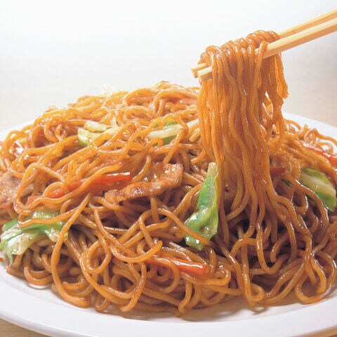 【原材料】めん(小麦粉(国内製造)、食塩/カラメル色素、かんすい)、野菜(キャベツ、にんじん)、中濃ソース、植物油、豚肉、砂糖、粉末ソース、食塩、粉末醤油、たん白加水分解物、酵母エキス、香辛料/カラメル色素、調味料(アミノ酸等)、乳化剤、乳酸カルシウム、酸味料、(一部にえび・小麦・大豆・鶏肉・豚肉・もも・りんごを含む)