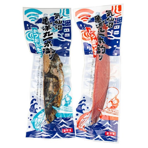 「亀洋丸かつお 気仙沼 とろかつお たたき 食べ比べセット」は、気仙沼船籍の遠洋一本釣りかつお船「亀洋丸(きようまる)」が、漁獲直後、船上で急速冷凍したとろかつおとかつおたたきの詰め合わせです。釣り上げられたカツオは冷凍状態のまま港まで運ばれ、そのまま水揚げされます。デリケートなカツオは、工場内の超低温冷蔵庫にて保管後、一本ずつ手作業にて加工・パック詰めされます。お酒のお供、おつまみ、食卓のおかず、ご飯のお供などとして、お取り寄せでお楽しみください。冷凍でお届けしますので、解凍後、そのままお召し上がりください。