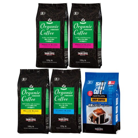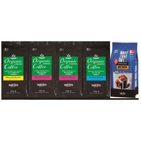 タカノコーヒー 有機栽培コーヒー 詰め合わせ コーヒー粉3種 ドリップバッグ 計5袋 オーガニックコーヒー 有機コーヒー 粉 ドリップバッグ