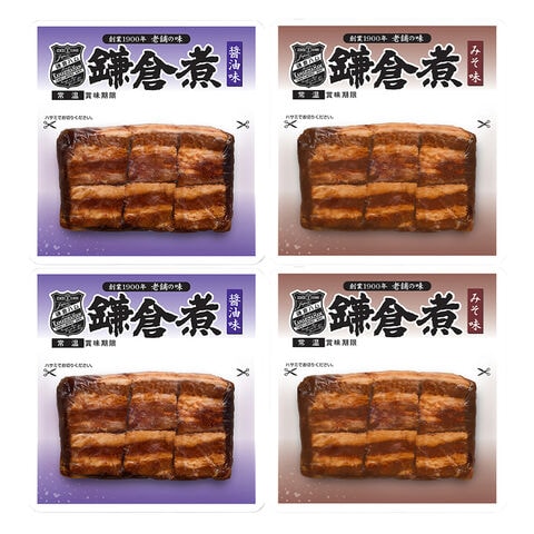 グルメレター 鎌倉ハム 富岡商会 鎌倉煮2種×2 豚角煮 おかず 温めるだけ 豚の角煮 お取り寄せ ポスト投函便
