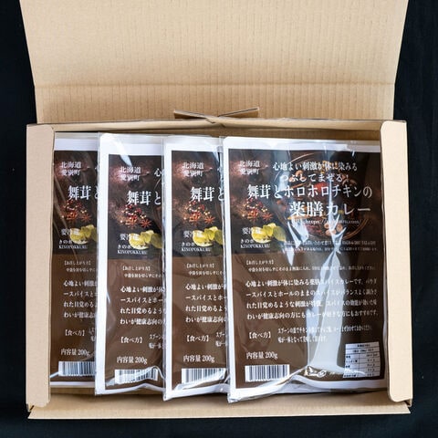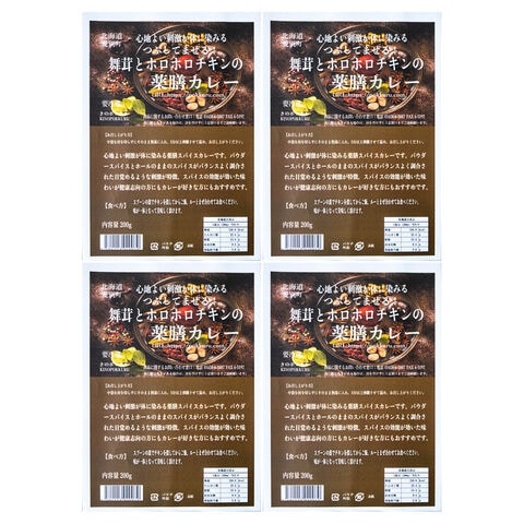 きのポックル 舞茸とホロホロチキンの薬膳カレー 4個入 カレー 冷蔵 お取り寄せ チキンカレー 中辛 薬膳カレー スパイス 化学調味料不使用 保存料不使用