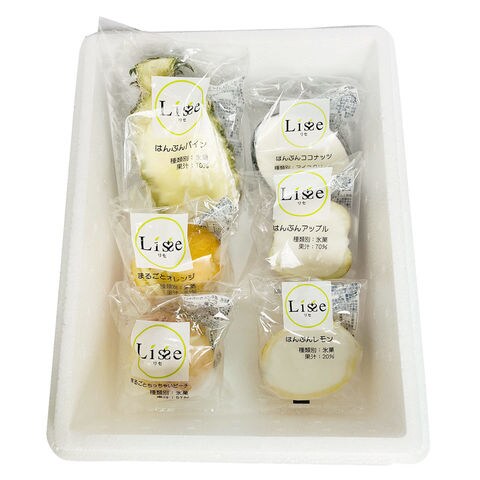 【数量・内容】(まるごとオレンジ、はんぶんパイン、はんぶんアップル、はんぶんココナッツ、はんぶんレモン、まるごとちっちゃいピーチ)×1