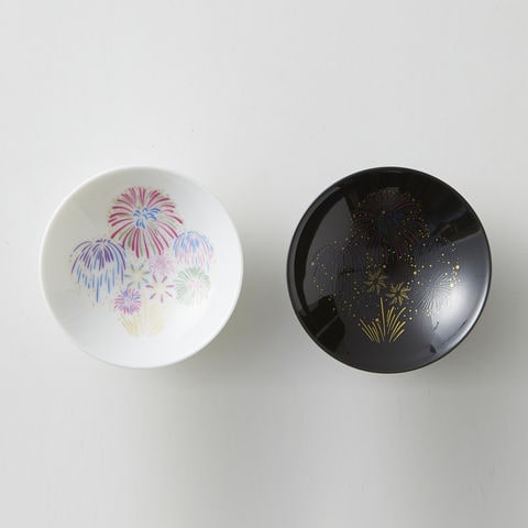 冷たい飲み物を注ぐと花火の模様の色が変わる「冷感花火平盃ペアセット」です。盃が17℃以下になると変化が生じます。常温になると元に戻るため、繰り返し変化を楽しんでいただくことができます。絵柄の花火が冷たい飲み物を注ぐと鮮やかに打ちあがります。伝統と最新技術を融合し、温度をデザインに取り入れた冷感シリーズ、日本の夏を表現し、夜空を彩る希望の光をテーマにデザインしました。見事に色づく華やかな花火を眺めて贅沢なひとときをお過ごしください。