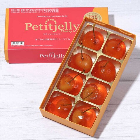 【原材料】さくらんぼ(山形産)、糖類(砂糖、ぶどう糖果糖液糖)、還元水飴、洋酒/ゲル化剤(増粘多糖類)、酸味料、香料、pH調整剤、ベニコウジ色素